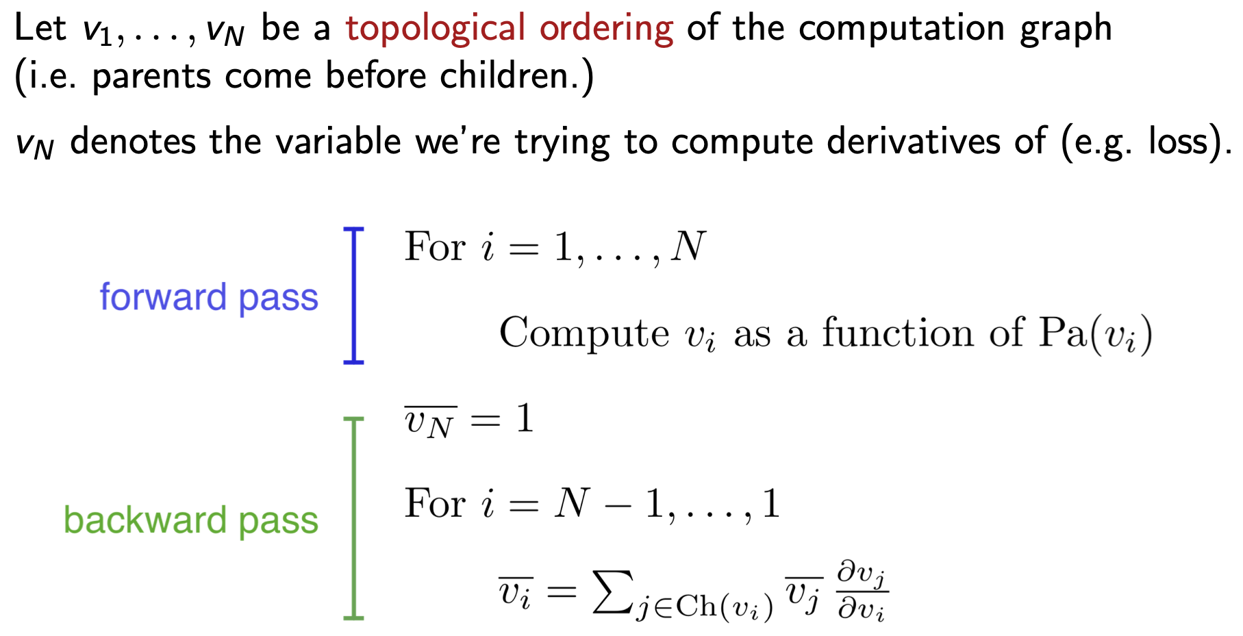 the backward pass then performs backpropagation, starting at the end and recursively applying the chain rule to compute the gradients all the way to the inputs of the circuit.