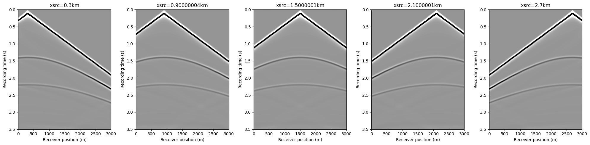 # For the receiver geometry, we specify the number of source to tell JUDI to use the same receiver position for all sources