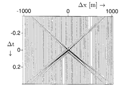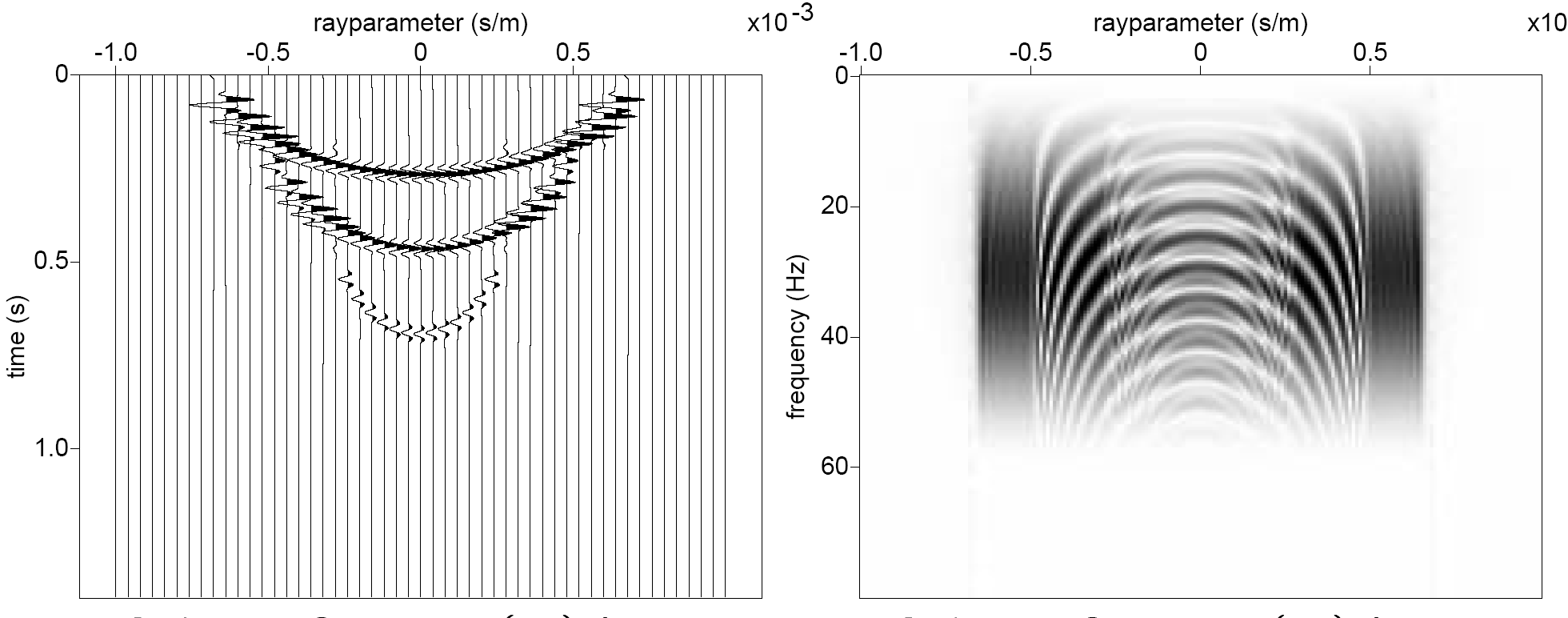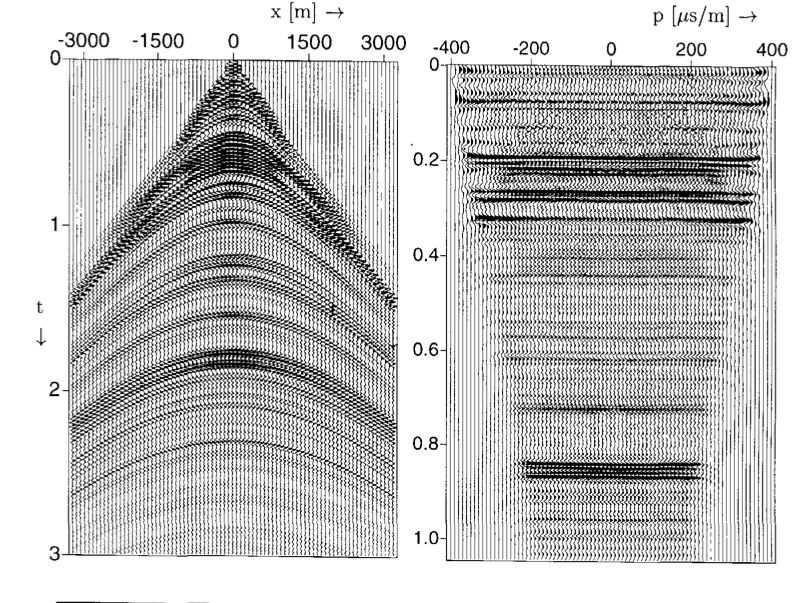 The linear Radon transform (\(\tau\)-\(p\) transform) maps data from the \(x\)-\(t\) domain to the \(\tau\)-\(p\) domain: