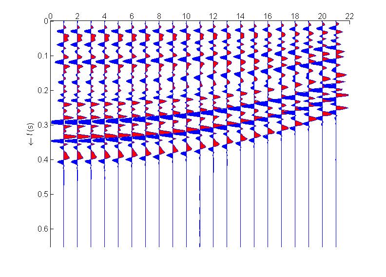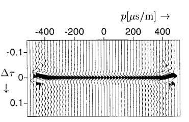 After back-propagation, the focused point in \(x\)-\(t\) maps to a focused point in \(\tau\)-\(p\), where the amplitudes approximate the reflection coefficients \(R_i(p)\) convolved with a stretched wavelet (Wijngaarden 1998).
