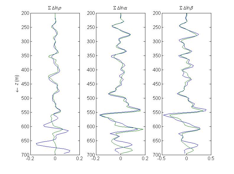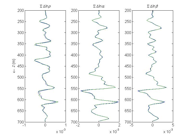 where \(\mathbf{m} = (\Delta\ln\rho,\;\Delta\ln\alpha,\;\Delta\ln\beta)^\top\) stacked over all \(N_z\) depth points.