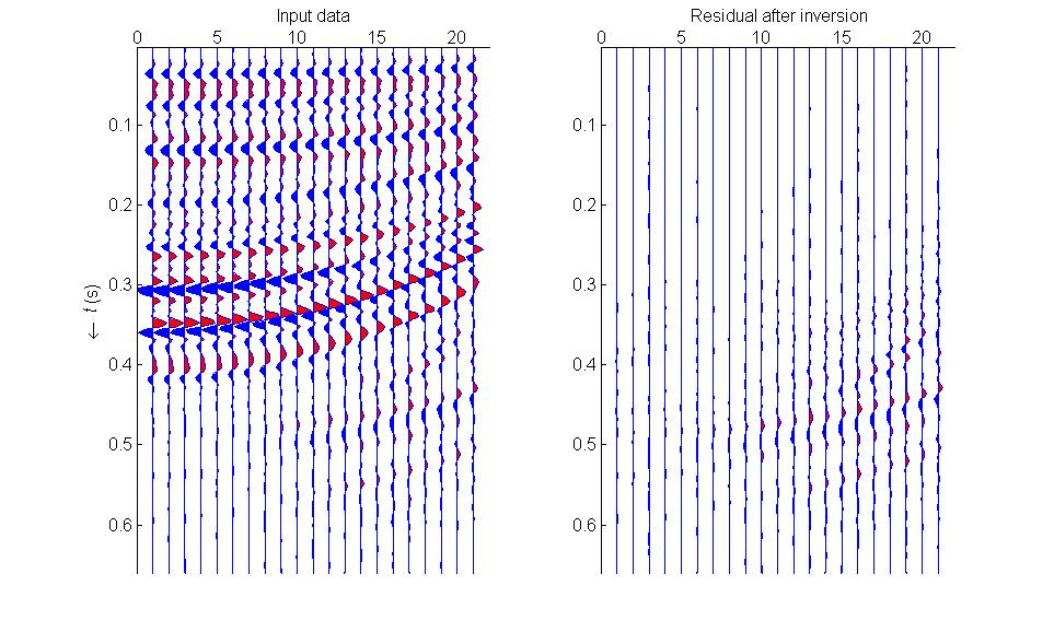 The \(\tau\)-\(p\) data model from the previous section relates the Radon-domain amplitudes to the linearized reflection coefficients: