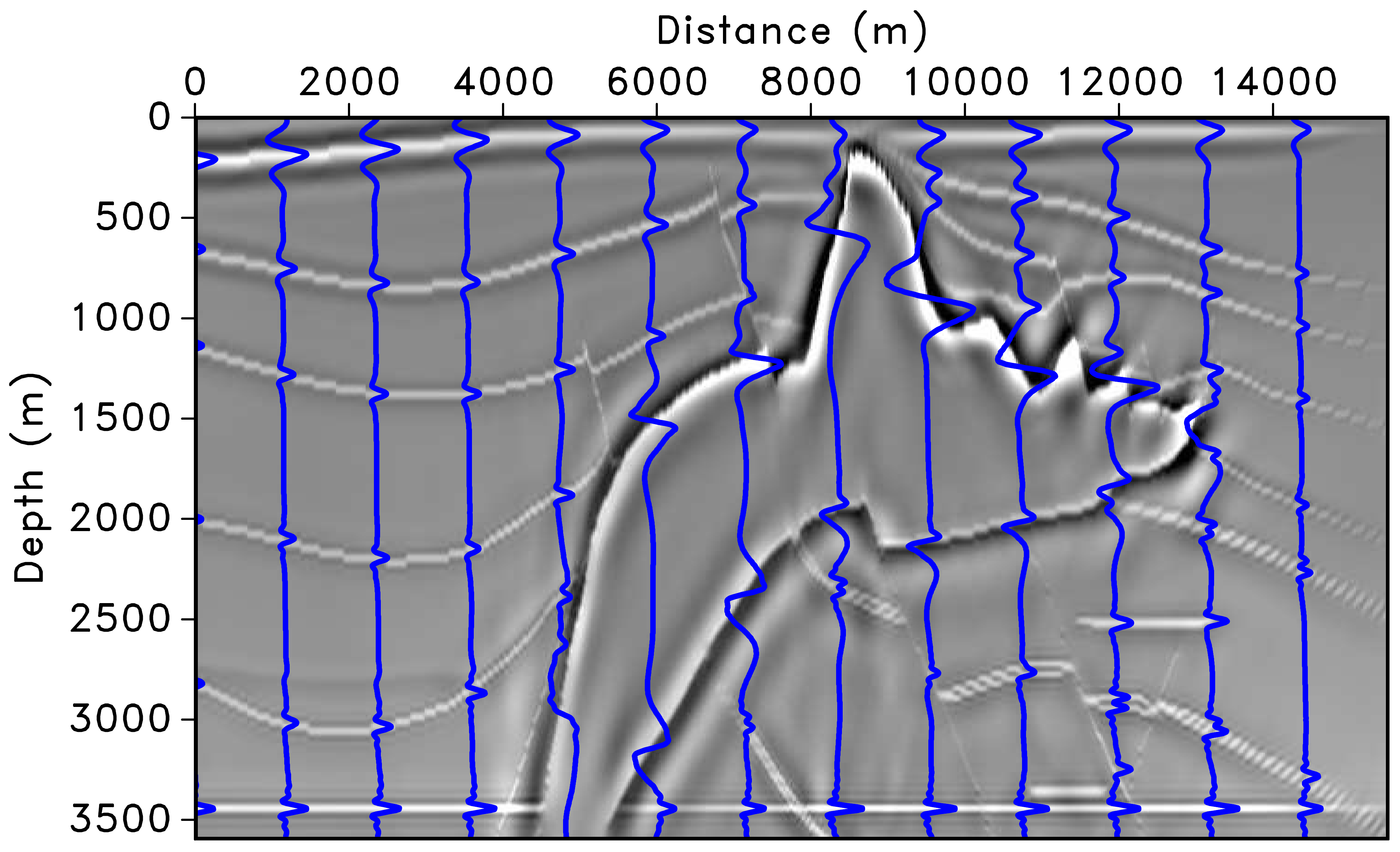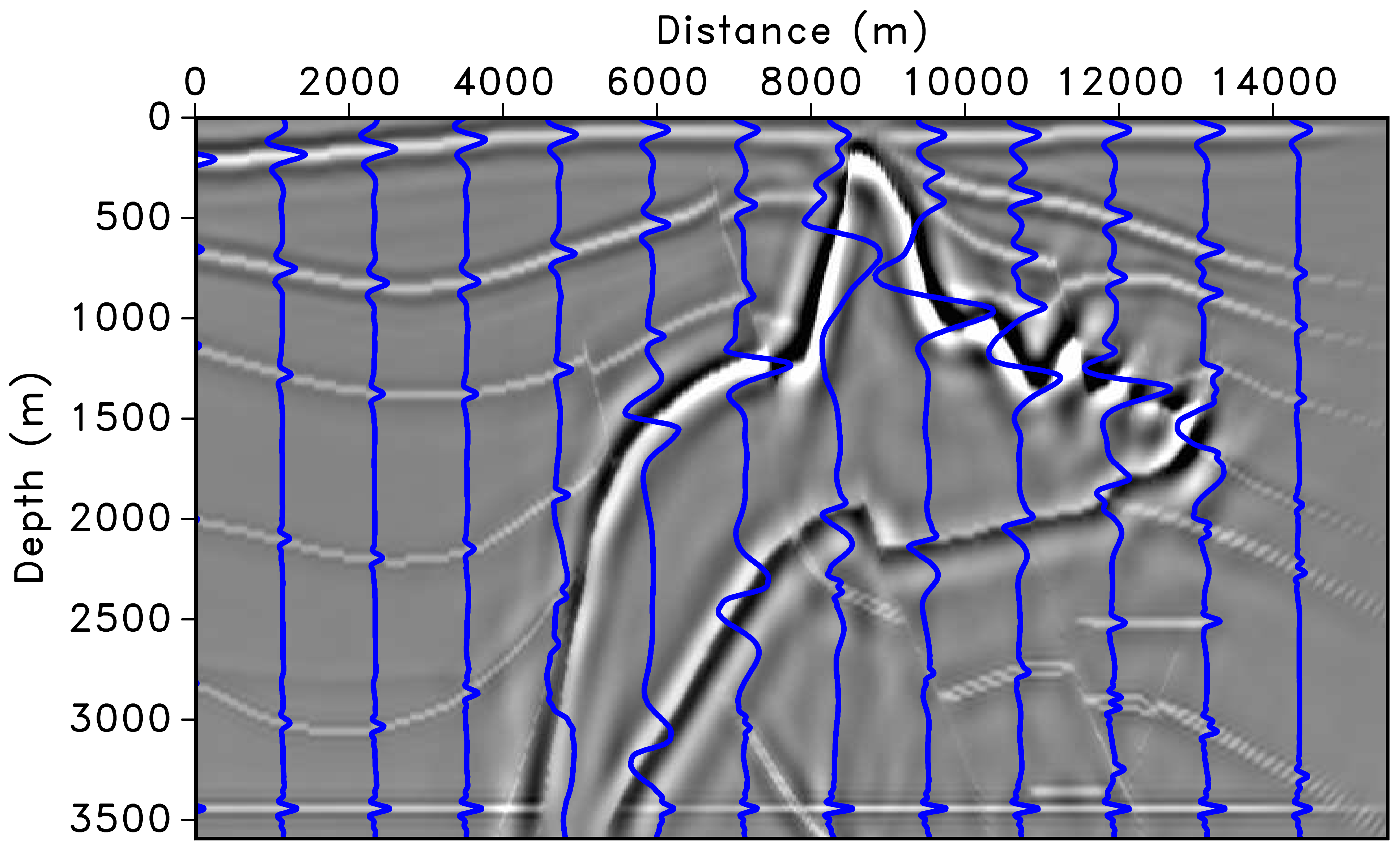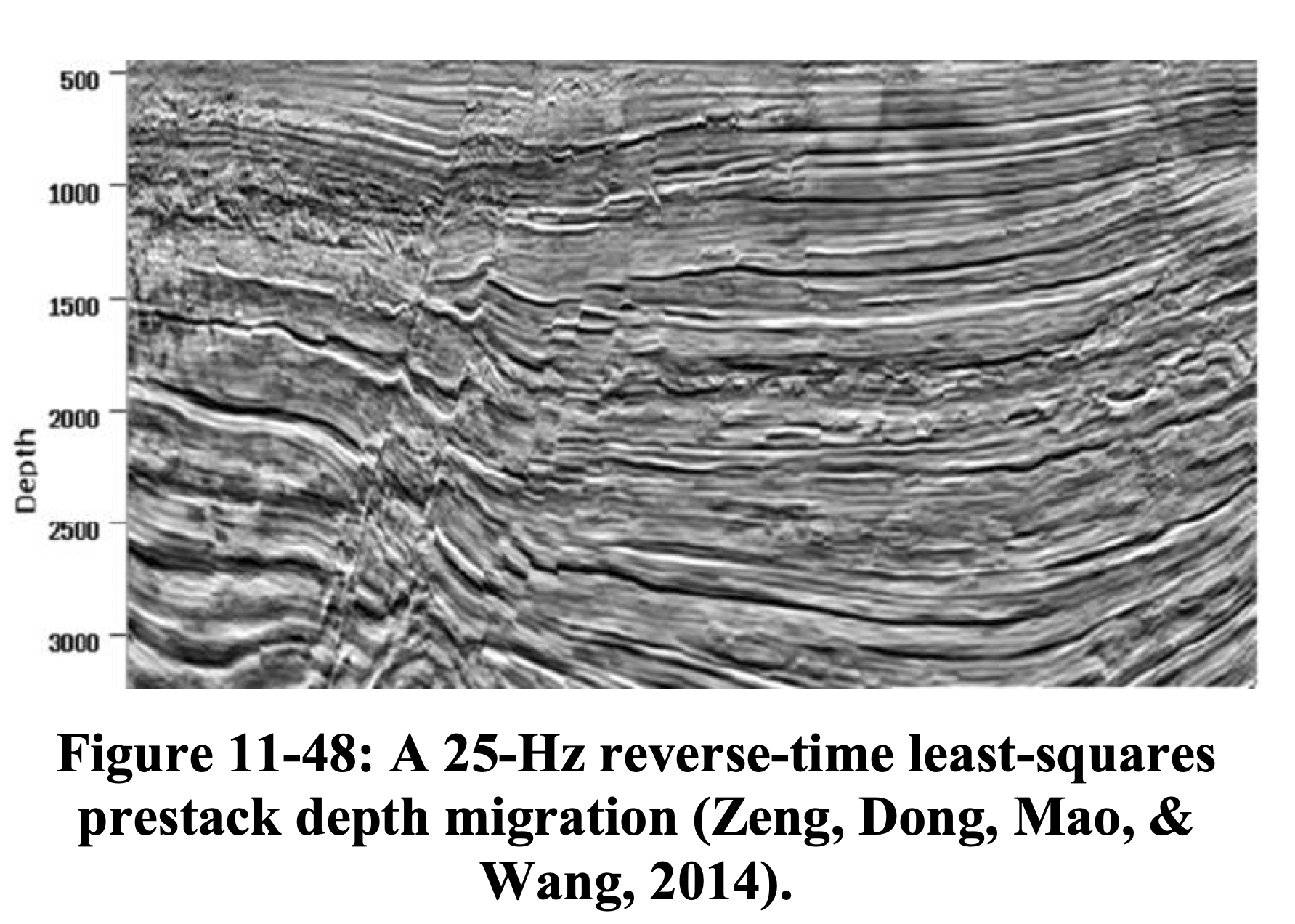 The migrated image suffers from deteriorated amplitudes, especially under the high-velocity salt and for steep reflectors and faults (Herrmann et al. 2009).