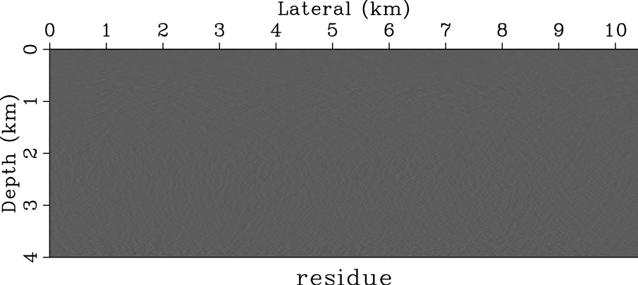 LS-RTM produces an image whose predicted data \(\mathbf{F}\mathbf{m}\) closely matches the observed data \(\mathbf{d}\), confirming that the Hessian has been effectively inverted (Yao and Jakubowicz 2012).