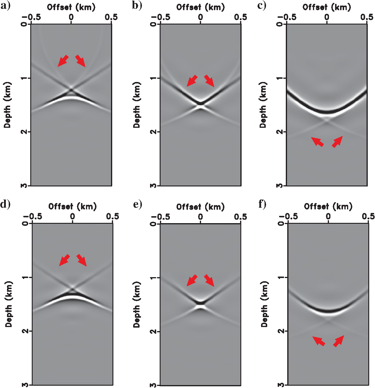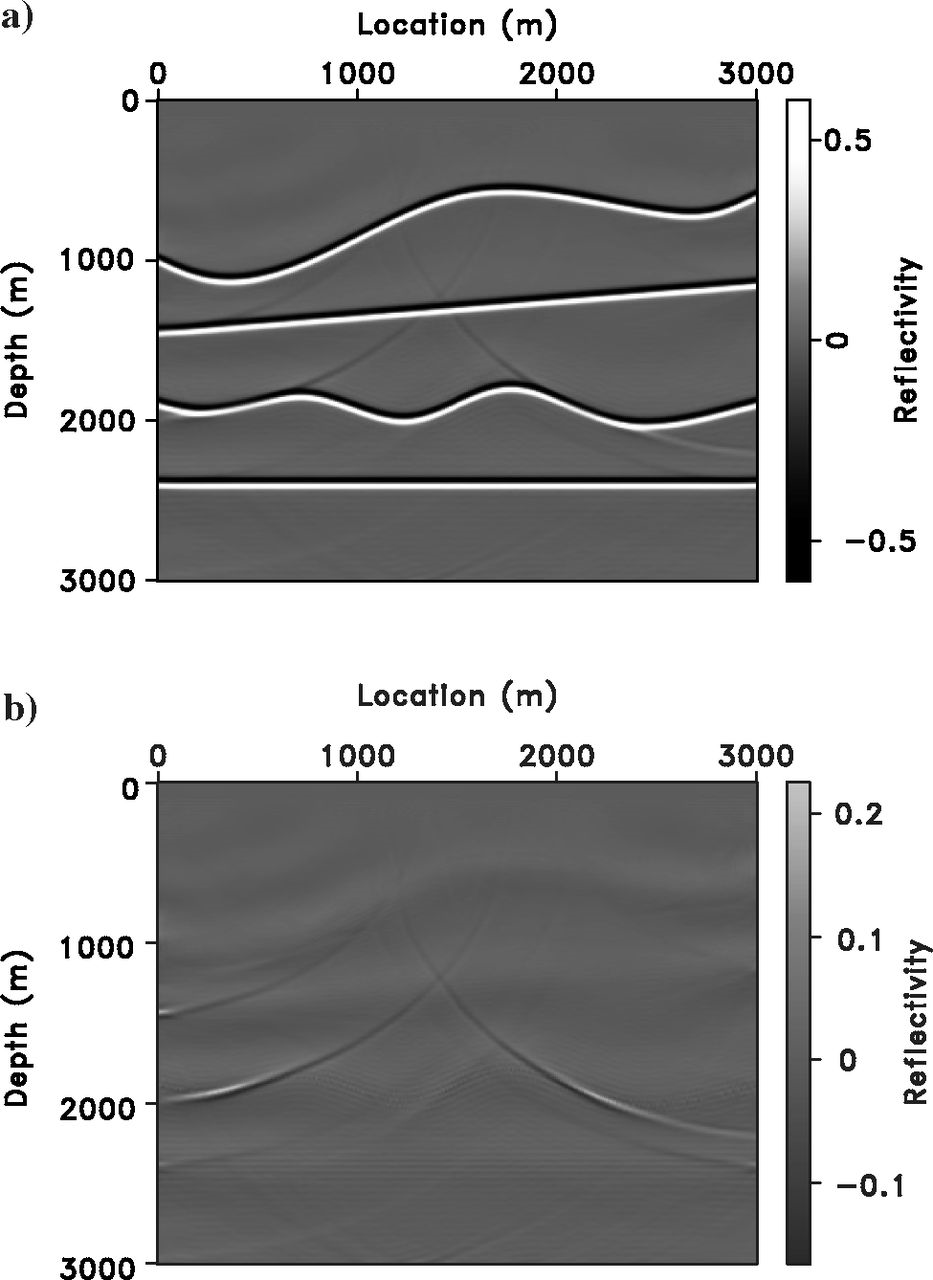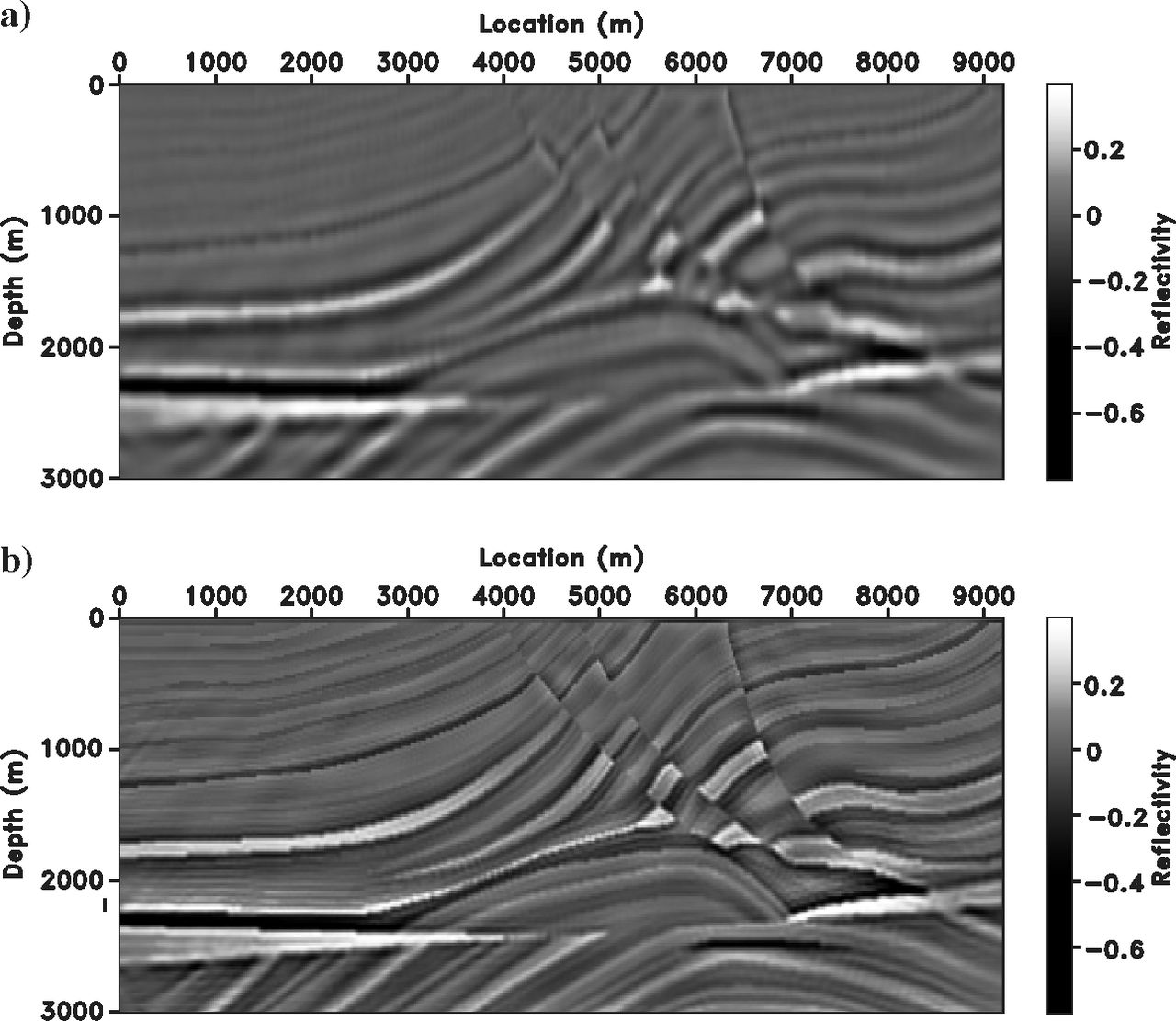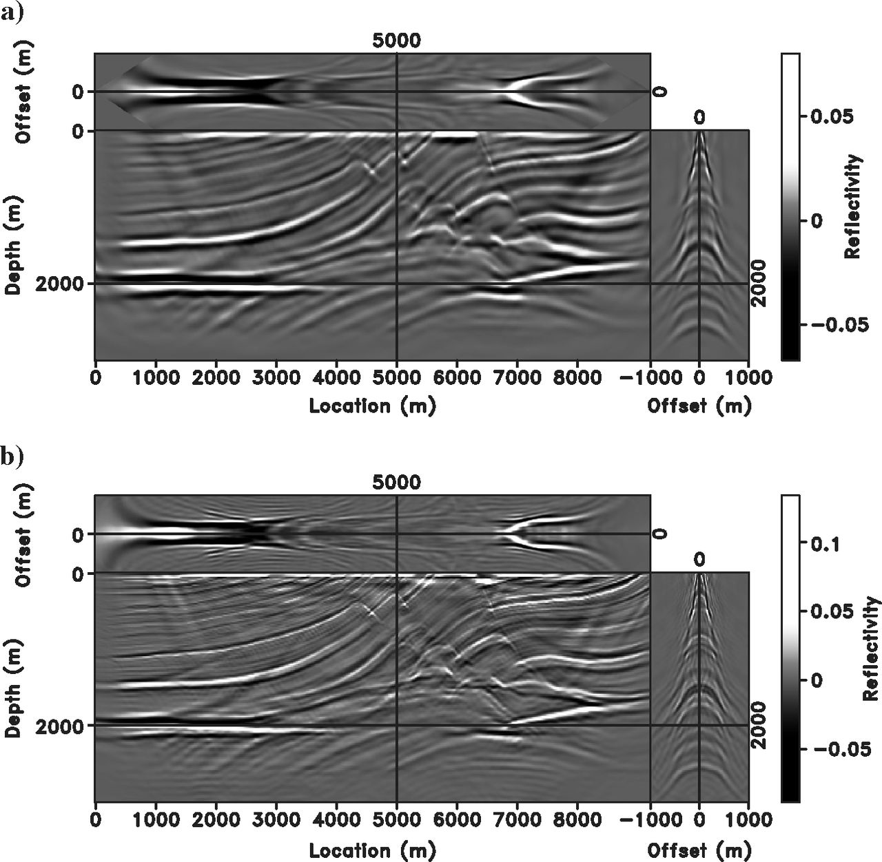 where \(I(\mathbf{x}, h)\) is the extended image from either RTM (\(\bar{F}^*\)) or the approximate inverse (\(\bar{F}^\dagger\)).