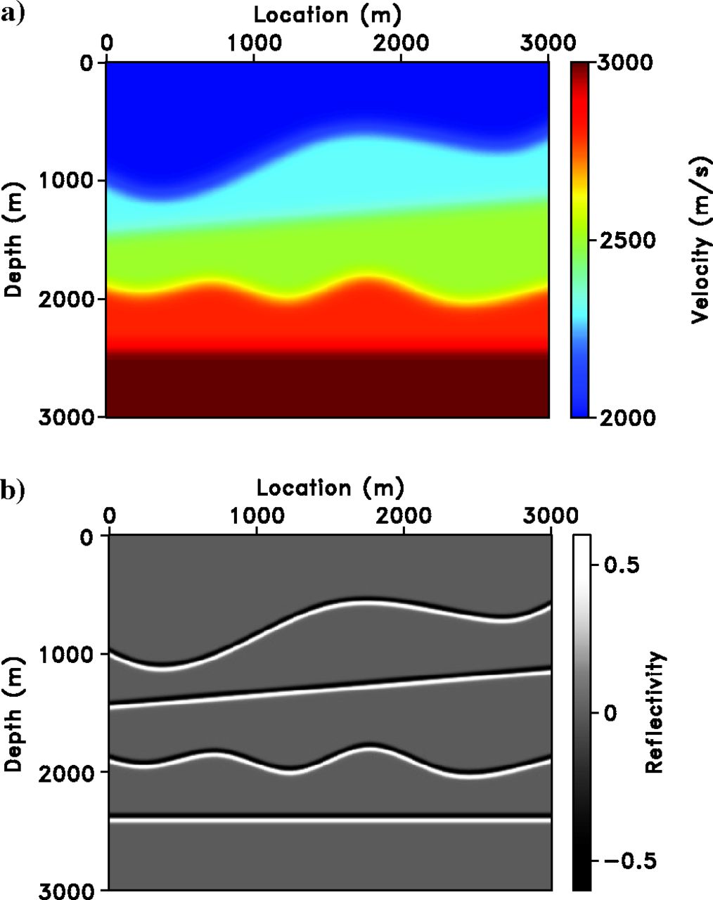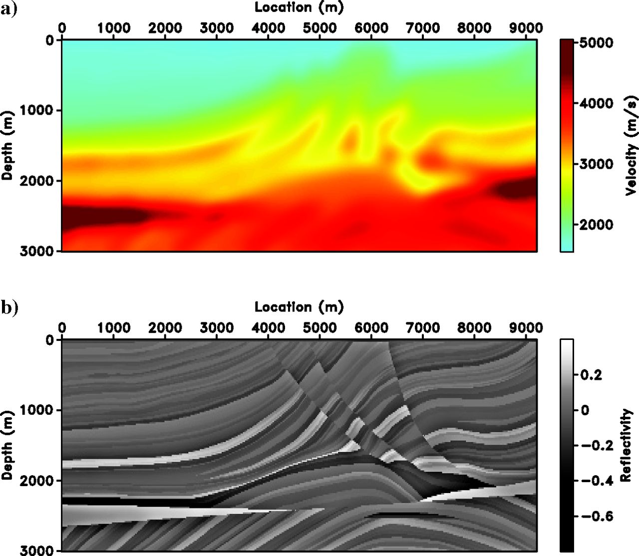 The velocity is decomposed as \(v(\mathbf{x}) = v_0(\mathbf{x}) + \delta v(\mathbf{x})\), where \(v_0\) is smooth and \(\delta v\) contains reflectors (Hou and Symes 2015).