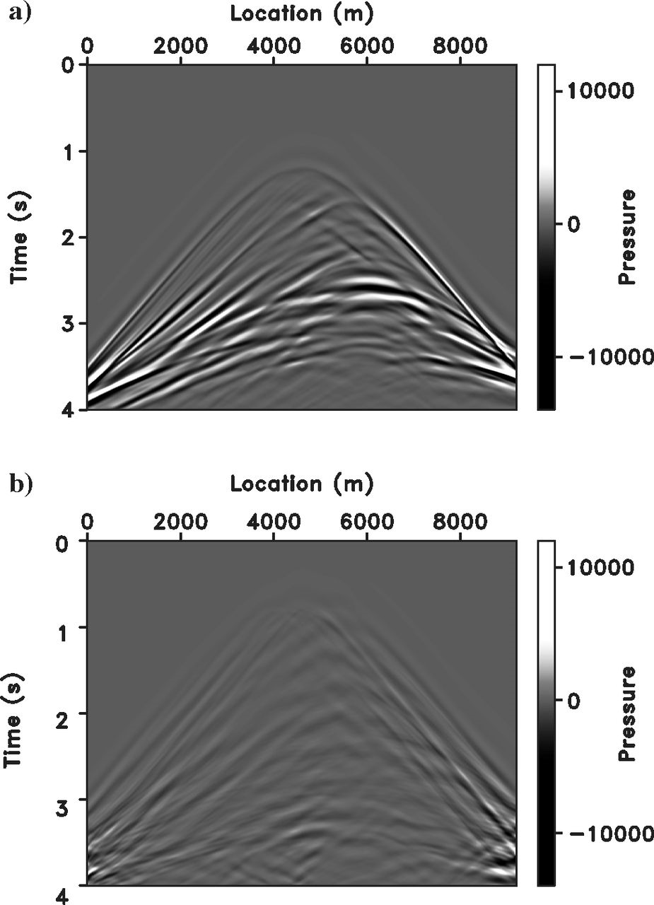 \(W_{\text{data}}\) depends only on \(v_0\) near sources and receivers — independent of the deep velocity structure. The computational cost of \(\bar{F}^\dagger\) is roughly the same as extended RTM. Approximately unitary means that the adjoint is close to the inverse and that most enegry/information is preserved.